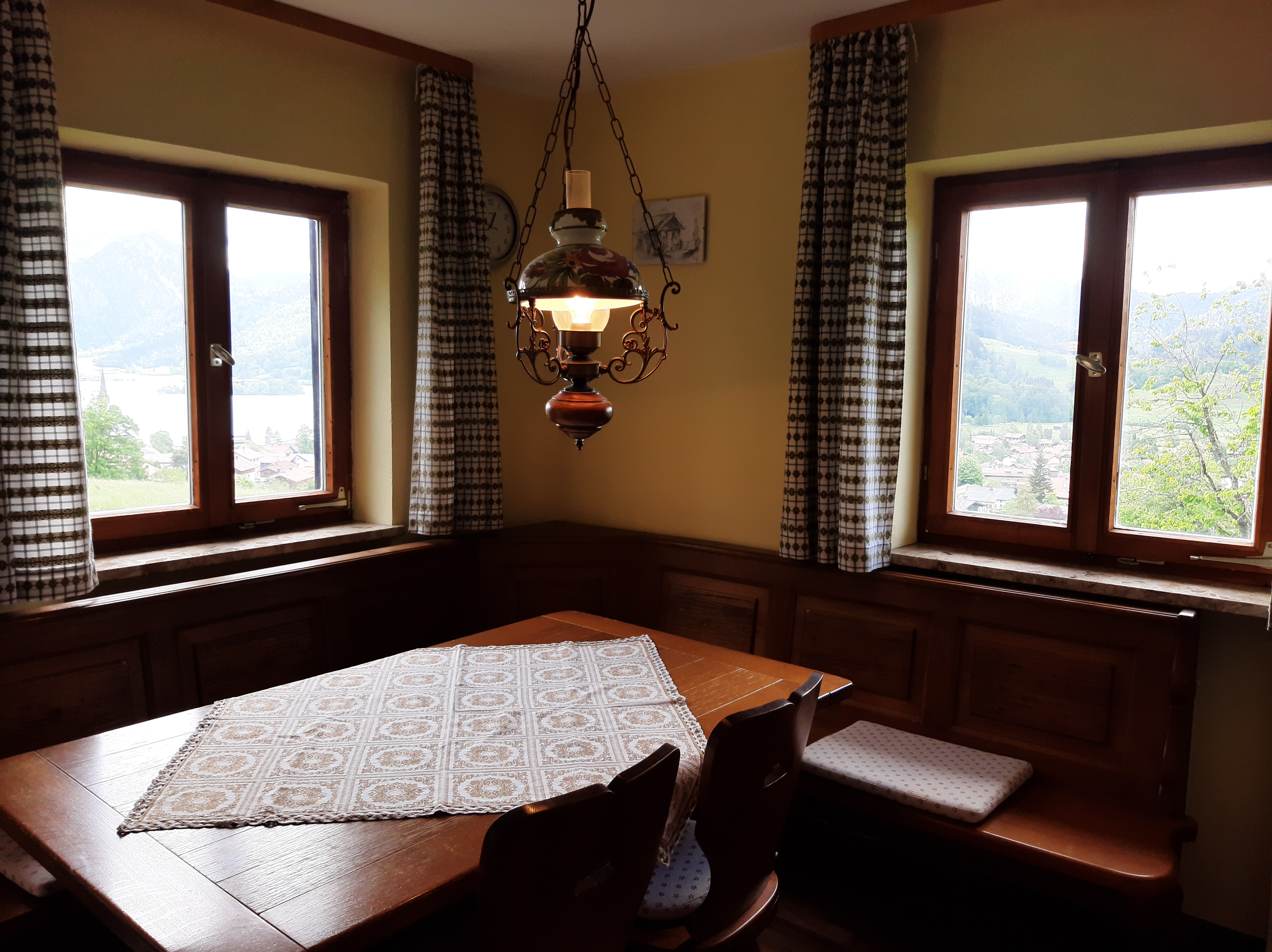 Auf dem in südlicher Lage gelegenen Balkon, haben Sie einen wunderschönen Blick auf den Schliersee mit nachfolgendem Alpenpanorama.