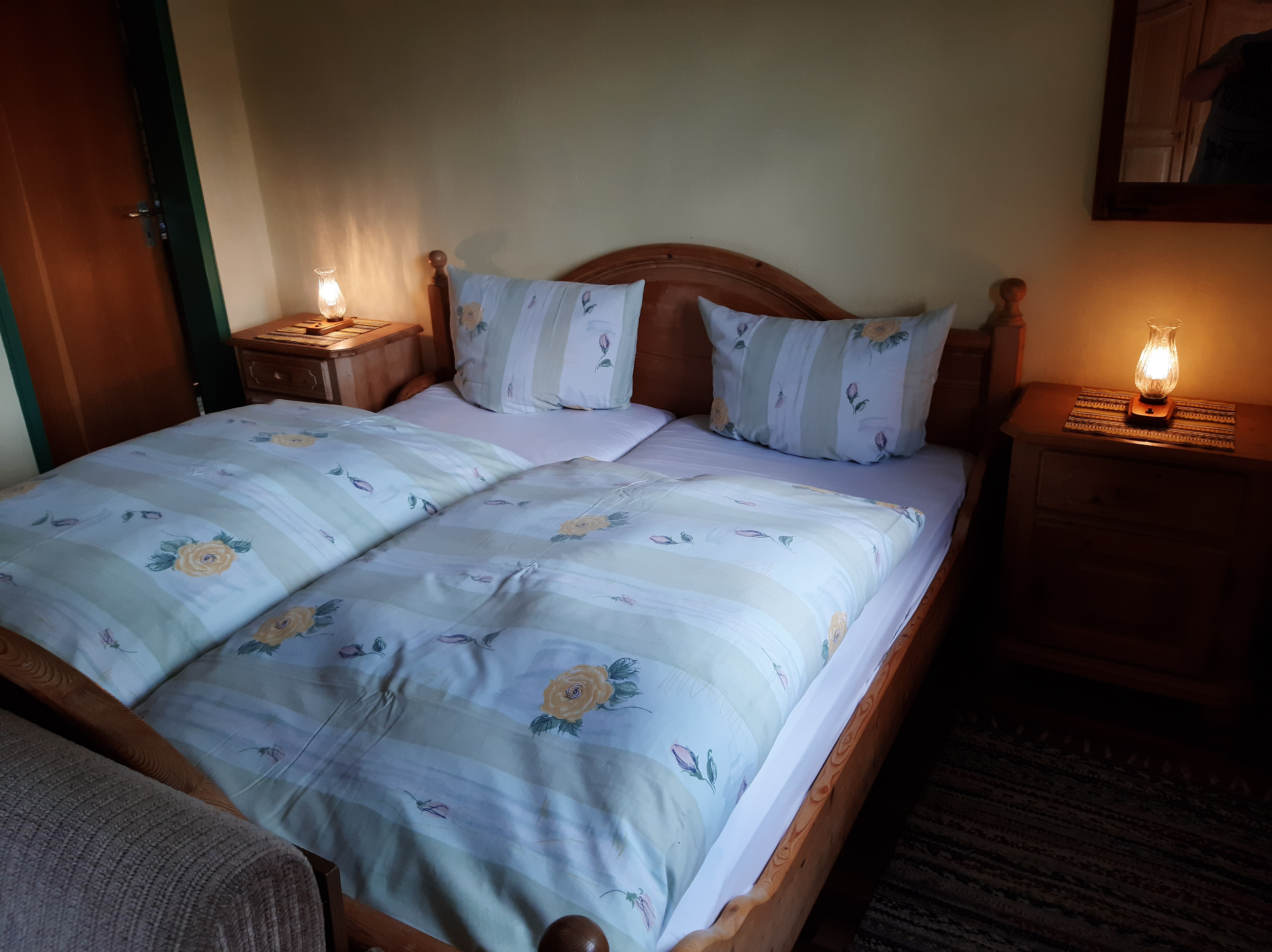 Die Ferienwohnung hat 2 Schlafzimmer. Beide sind ausgestattet mit einem Doppelbett. Ein Schlafzimmer bietet noch das Ausziehen einer Schlafcouch zum nächtigen an.
