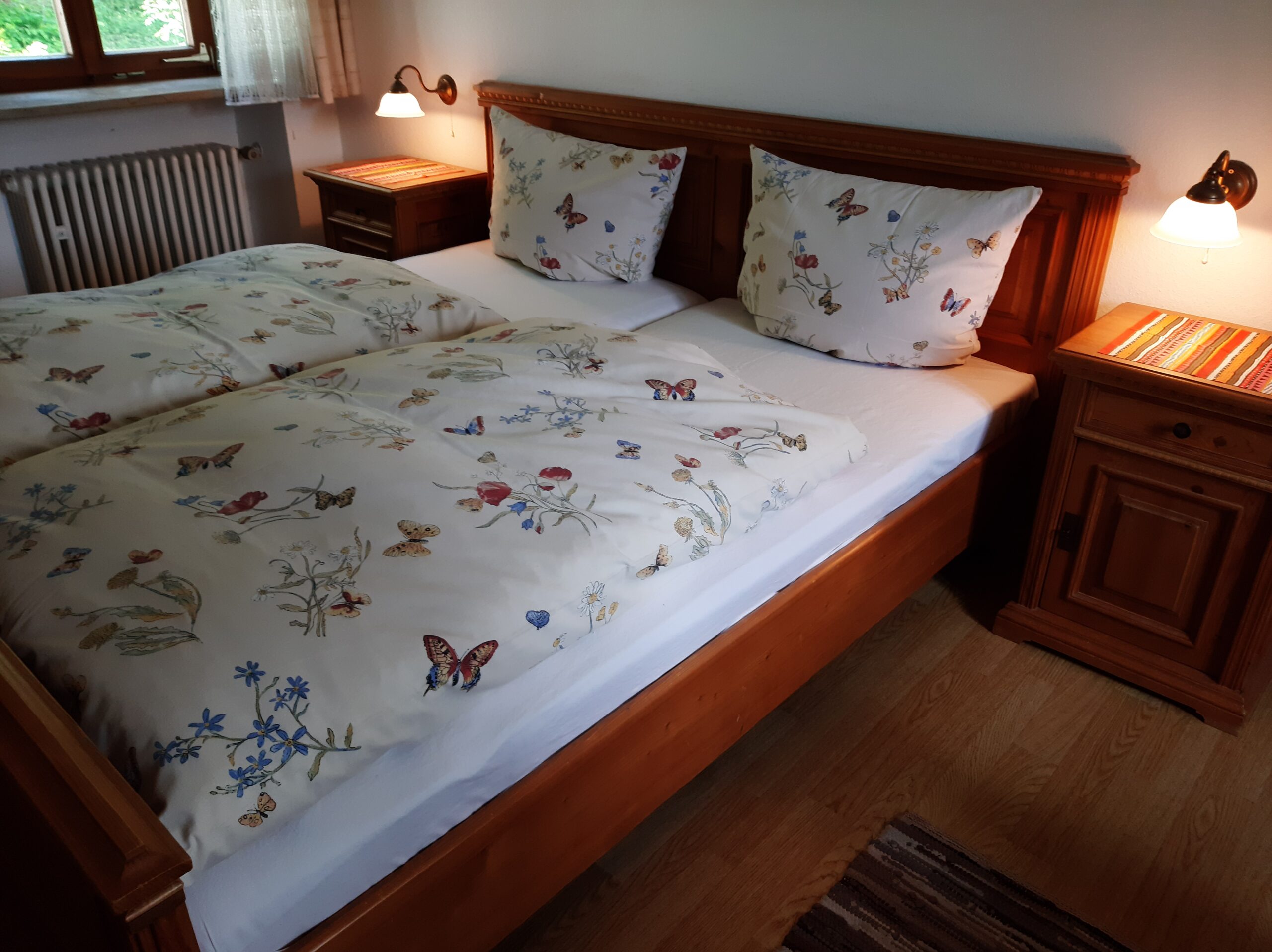 Die Ferienwohnung hat 2 Schlafzimmer. Beide sind ausgestattet mit einem Doppelbett. Ein Schlafzimmer bietet noch das Ausziehen einer Schlafcouch zum nächtigen an.